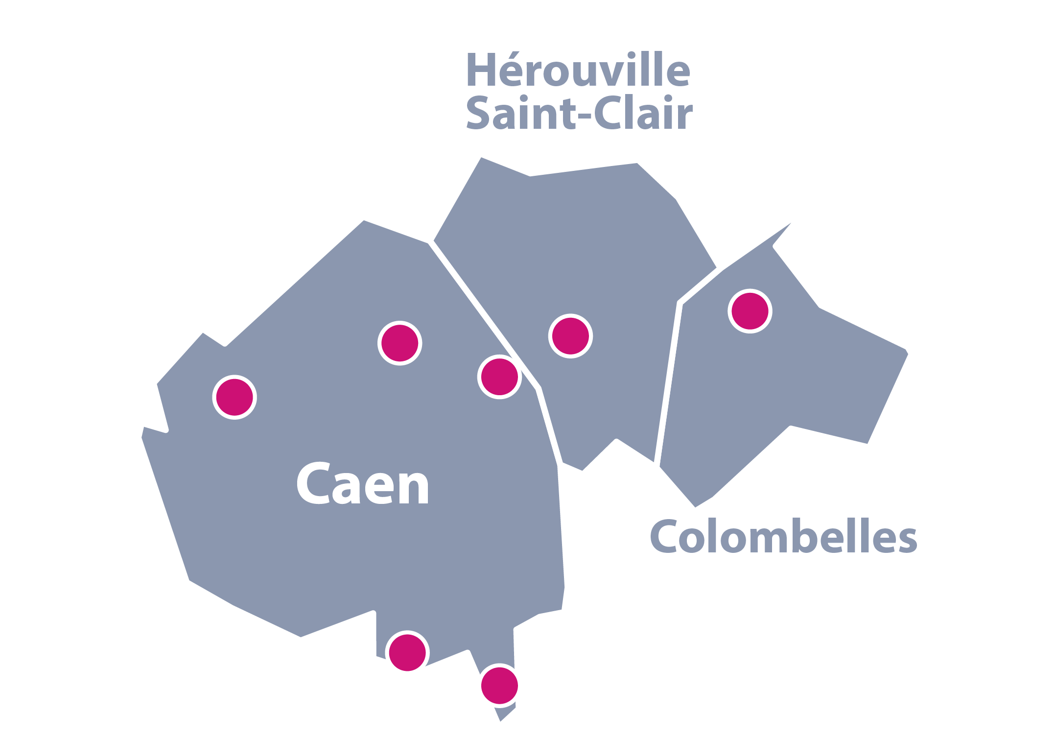 Cliquez sur chaque quartier (point rose) pour télécharger la carte et les fiches "action" associées. |